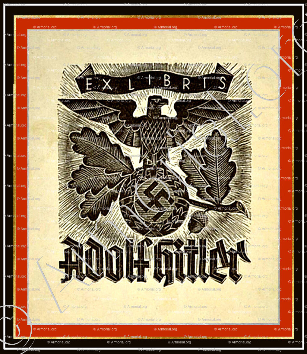 Ex-libris em 1923. A biblioteca pessoal de Adolf Hitler no Kehlsteinhaus, Berchtesgaden.