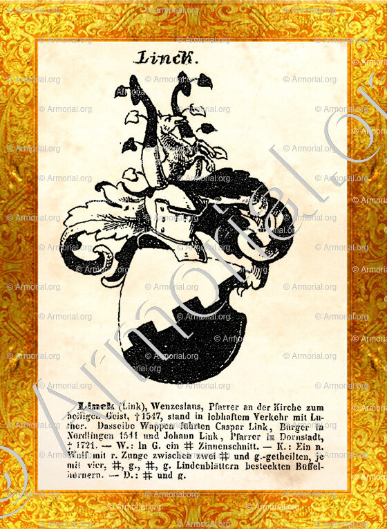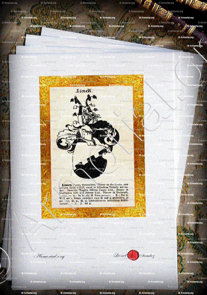Famiglia LINCK - Blasone LINCK - Stemma LINCK - Stemma di famiglia LINCK - Lo stemma araldico della famiglia LINCK - Lo stemma di LINCK - Araldica e stemma LINCK - Registro Araldico LINCK - Stemmario LINCK - Registro Genealogico LINCK - Sigillo LINCK - Archivio LINCK - Genealogia LINCK - Albero genealogico LINCK - Araldica LINCK - Origine LINCK - In Storia LINCK - LINCK nella nobiltà.