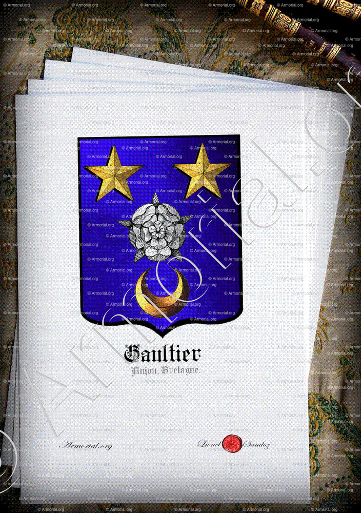 Famiglia GAULTIER - Blasone GAULTIER - Stemma GAULTIER - Stemma di famiglia GAULTIER - Lo stemma araldico della famiglia GAULTIER - Lo stemma di GAULTIER - Araldica e stemma GAULTIER - Registro Araldico GAULTIER - Stemmario GAULTIER - Registro Genealogico GAULTIER - Sigillo GAULTIER - Archivio GAULTIER - Genealogia GAULTIER - Albero genealogico GAULTIER - Araldica GAULTIER - Origine GAULTIER - In Storia GAULTIER - GAULTIER nella nobiltà.