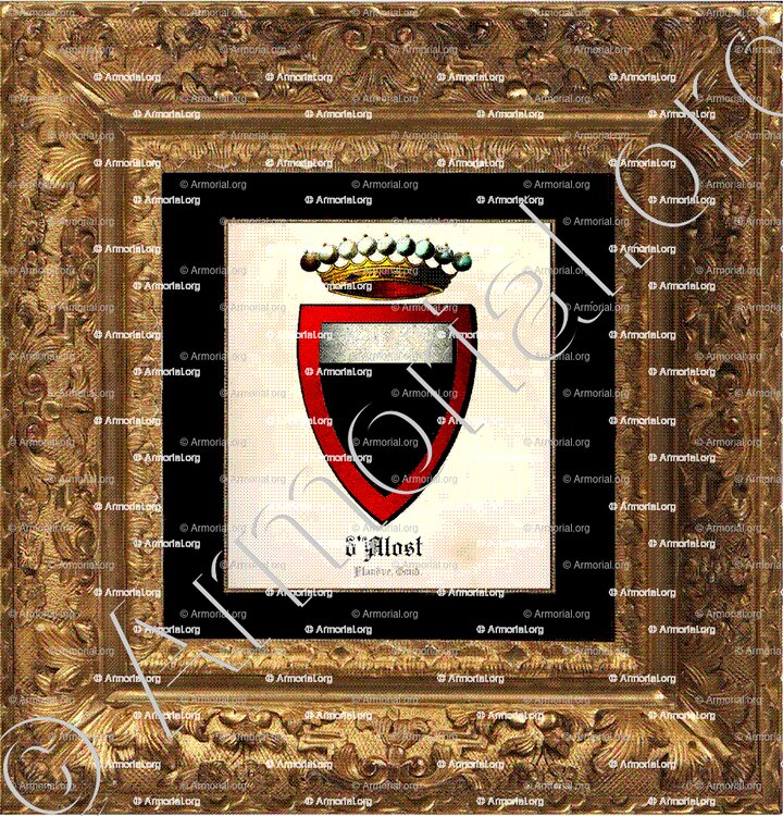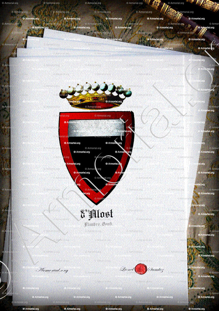 Famiglia d'ALOST - Blasone d'ALOST - Stemma d'ALOST - Stemma di famiglia d'ALOST - Lo stemma araldico della famiglia d'ALOST - Lo stemma di d'ALOST - Araldica e stemma d'ALOST - Registro Araldico d'ALOST - Stemmario d'ALOST - Registro Genealogico d'ALOST - Sigillo d'ALOST - Archivio d'ALOST - Genealogia d'ALOST - Albero genealogico d'ALOST - Araldica d'ALOST - Origine d'ALOST - In Storia d'ALOST - d'ALOST nella nobiltà.