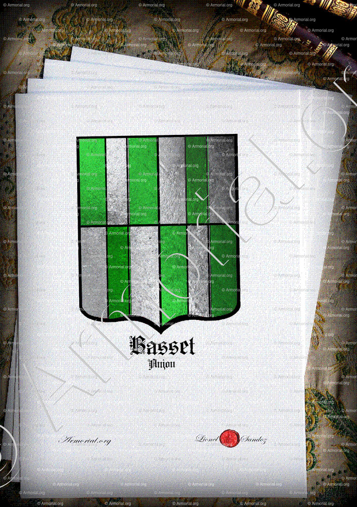 « Écartelé: aux 1 et 4, de sinople, à un pal d'argent, aux 2 et 3, d'argent, à un pal de sinople. »