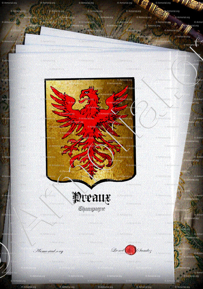 Famiglia PREAUX - Blasone PREAUX - Stemma PREAUX - Stemma di famiglia PREAUX - Lo stemma araldico della famiglia PREAUX - Lo stemma di PREAUX - Araldica e stemma PREAUX - Registro Araldico PREAUX - Stemmario PREAUX - Registro Genealogico PREAUX - Sigillo PREAUX - Archivio PREAUX - Genealogia PREAUX - Albero genealogico PREAUX - Araldica PREAUX - Origine PREAUX - In Storia PREAUX - PREAUX nella nobiltà.