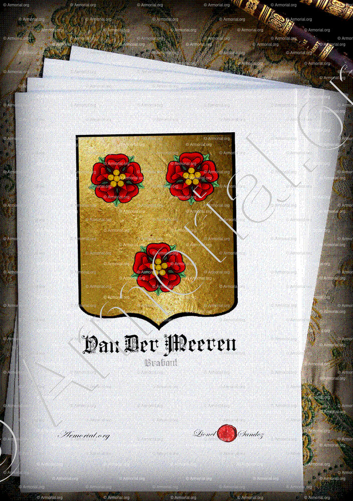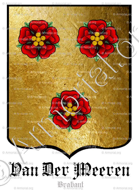 - " D'or, à trois roses de gueules, boutonnées du champ. "