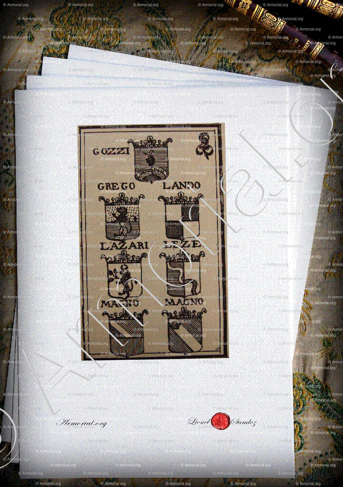 Familie GOZZI - Familiewapen GOZZI - Wapen GOZZI - Wapen of blazoen GOZZI - Schild GOZZI - Wapendiploma GOZZI - Zeehond GOZZI - Archief GOZZI - Genealogie GOZZI - Stamboom GOZZI - Heraldiek GOZZI - Herkomst GOZZI - GOZZI in History - GOZZI in de adel.