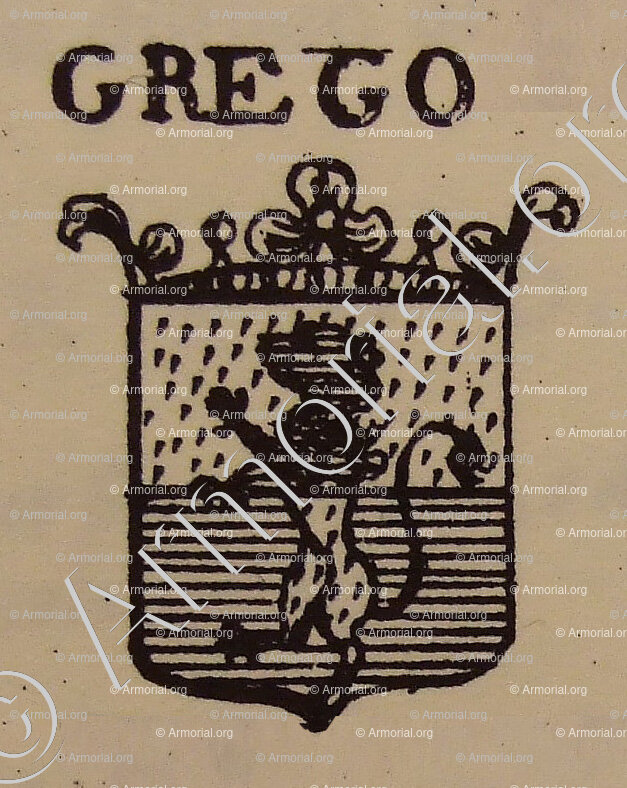 Famiglia GREGO - Blasone GREGO - Stemma GREGO - Stemma di famiglia GREGO - Lo stemma araldico della famiglia GREGO - Lo stemma di GREGO - Araldica e stemma GREGO - Registro Araldico GREGO - Stemmario GREGO - Registro Genealogico GREGO - Sigillo GREGO - Archivio GREGO - Genealogia GREGO - Albero genealogico GREGO - Araldica GREGO - Origine GREGO - In Storia GREGO - GREGO nella nobiltà.
