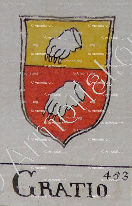 GRATIO è un cognome che si accompagna ad un blasone ed inalbera le « armi gentilizie ».
