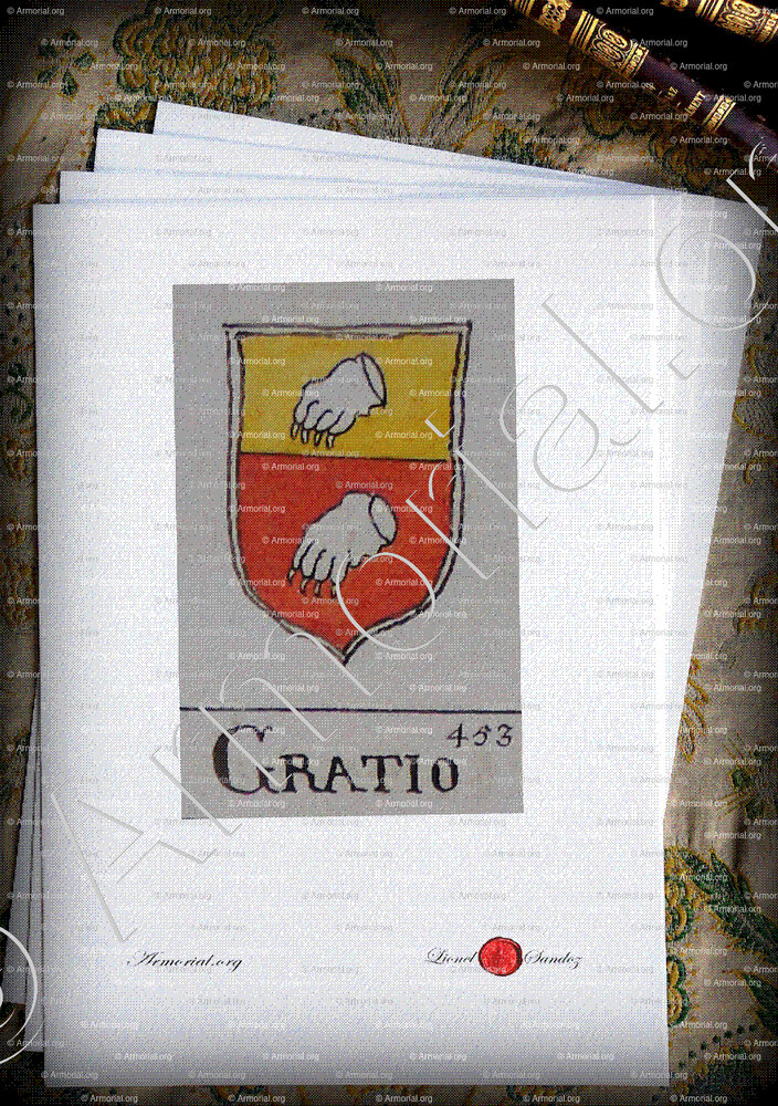 Família GRATIO - Blazon GRATIO - Braços GRATIO - Crista da família GRATIO - Armorial GRATIO - Armas GRATIO - Braços em um protetor GRATIO - Brasonadas GRATIO - Estampada GRATIO - Escudo blazoned GRATIO - Arquivo GRATIO - Ascendência GRATIO - Progeny GRATIO - Heráldica GRATIO - Origem GRATIO. - O GRATIO na História - GRATIO na nobreza - Moeda GRATIO - Burguesia Braços GRATIO - Nobreza Braços GRATIO.