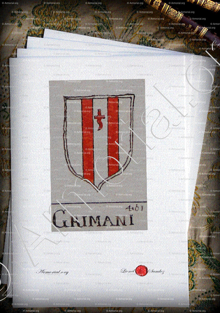 Famiglia GRIMANI - Blasone GRIMANI - Stemma GRIMANI - Stemma di famiglia GRIMANI - Lo stemma araldico della famiglia GRIMANI - Lo stemma di GRIMANI - Araldica e stemma GRIMANI - Registro Araldico GRIMANI - Stemmario GRIMANI - Registro Genealogico GRIMANI - Sigillo GRIMANI - Archivio GRIMANI - Genealogia GRIMANI - Albero genealogico GRIMANI - Araldica GRIMANI - Origine GRIMANI - In Storia GRIMANI - GRIMANI nella nobiltà.