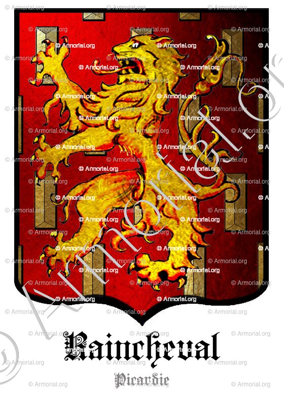 — J. de Raincheval, échevin d'Abbeville en 1448, 49, 50, 51, 52, 53. — Marguerite, femme de Jean de Rély, Sr de Rochefort, maître d'hôtel du Roi Louis XII. — Do Marguerite Gonnet, veuve de Jean de Raincheval, demo à Arras, 1545.