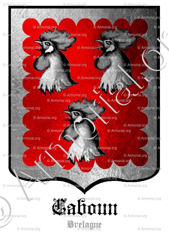 Étymologie : Le nom Caboun (et ses variantes Cabon, Capoun, Capon) dérive du terme breton caboun, signifiant « chapon » (coq castré), comme indiqué dans le Dictionnaire français-celtique de Grégoire de Rostrenen. Ce terme, utilisé en Basse-Bretagne, reflète une origine celtique liée à l’agriculture ou à l’élevage. Les dérivés comme cabónica (petit chapon) ou caboun roftet (chapon rôti) renforcent cette connexion linguistique. Le nom peut avoir été adopté comme surnom ou toponyme, désignant une famille associée à l’élevage ou à une caractéristique locale.