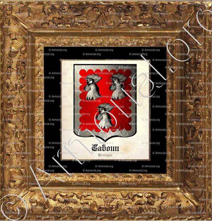 Bretagne (XVIIe-XVIIIe siècles) : Le nom Cabon ou Le Cabon est bien documenté dans le Finistère, notamment à Tréogat, Sibiril et Plougar. Les registres généalogiques montrent une famille implantée localement, avec des mariages et alliances dans des paroisses bretonnes. Le manoir de Kergunic (Kernoues, Finistère) est associé aux armoiries d’argent à trois têtes de chapon arrachées de gueules, suggérant une famille de petite noblesse ou de propriétaires terriens.
