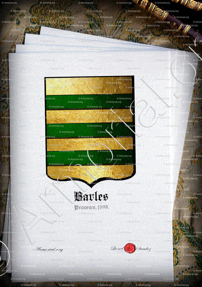 Famiglia BARLES - Blasone BARLES - Stemma BARLES - Stemma di famiglia BARLES - Lo stemma araldico della famiglia BARLES - Lo stemma di BARLES - Araldica e stemma BARLES - Registro Araldico BARLES - Stemmario BARLES - Registro Genealogico BARLES - Sigillo BARLES - Archivio BARLES - Genealogia BARLES - Albero genealogico BARLES - Araldica BARLES - Origine BARLES - In Storia BARLES - BARLES nella nobiltà.