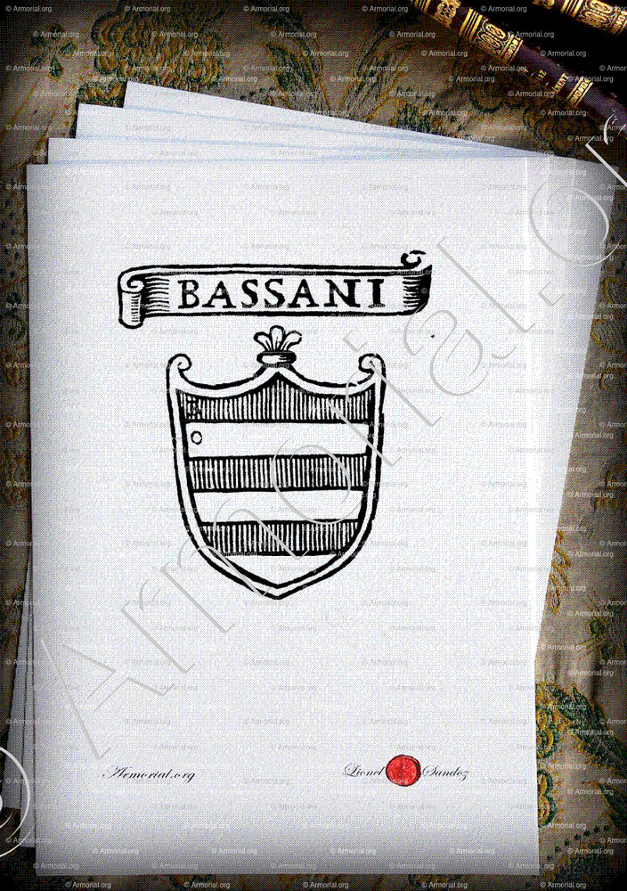 Famiglia BASSANI - Blasone BASSANI - Stemma BASSANI - Stemma di famiglia BASSANI - Lo stemma araldico della famiglia BASSANI - Lo stemma di BASSANI - Araldica e stemma BASSANI - Registro Araldico BASSANI - Stemmario BASSANI - Registro Genealogico BASSANI - Sigillo BASSANI - Archivio BASSANI - Genealogia BASSANI - Albero genealogico BASSANI - Araldica BASSANI - Origine BASSANI - In Storia BASSANI - BASSANI nella nobiltà.
