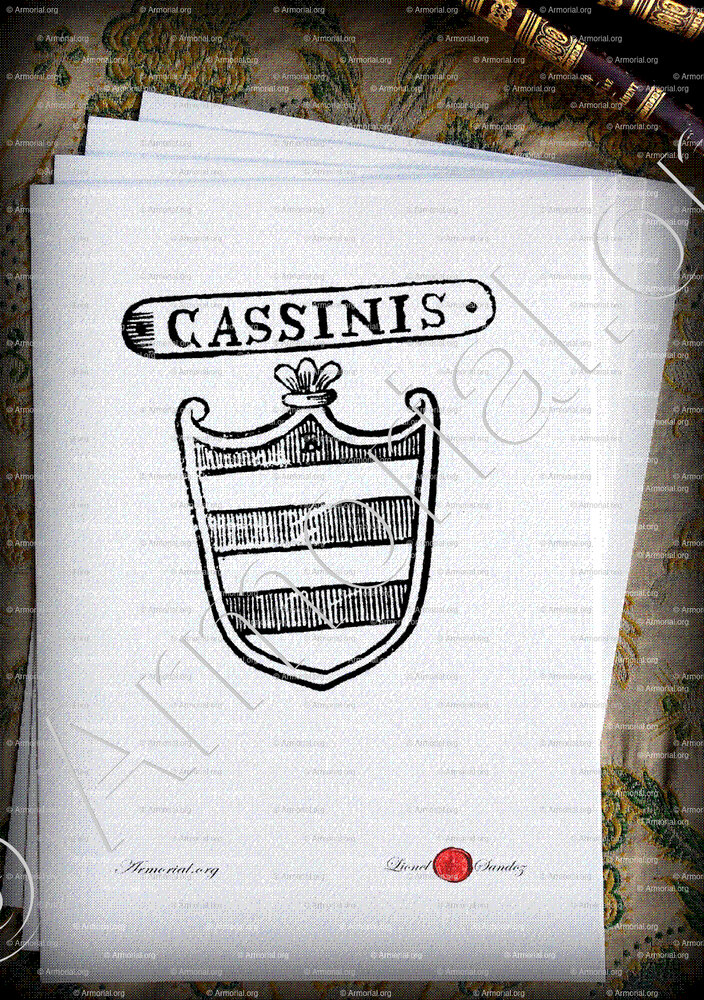 Famille CASSINIS - Blason CASSINIS - Blasonnement CASSINIS - Armoiries CASSINIS - Armoiries de famille CASSINIS - Armorial CASSINIS - Armes CASSINIS - Armes sur un écu CASSINIS - Ecu CASSINIS - Ecus armoriés CASSINIS - Bannière, flanchières, caparaçon armoriés CASSINIS - Bouclier armorié CASSINIS - Sceau CASSINIS - Sceau armorié CASSINIS - Archives CASSINIS - Généalogie CASSINIS - Arbre généalogique CASSINIS - Ascendance CASSINIS - Descendance CASSINIS - Héraldique CASSINIS - Origine CASSINIS . - Les CASSINIS dans l'Histoire - Les CASSINIS dans la noblesse - Devise CASSINIS - Armoiries de bourgeoisie CASSINIS - Armoiries de noblesse CASSINIS .
