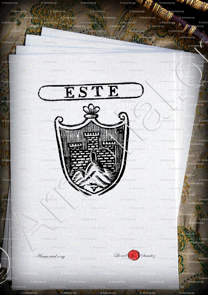 Famiglia ESTE o Da ESTE - Blasone ESTE o Da ESTE - Stemma ESTE o Da ESTE - Stemma di famiglia ESTE o Da ESTE - Lo stemma araldico della famiglia ESTE o Da ESTE - Lo stemma di ESTE o Da ESTE - Araldica e stemma ESTE o Da ESTE - Registro Araldico ESTE o Da ESTE - Stemmario ESTE o Da ESTE - Registro Genealogico ESTE o Da ESTE - Sigillo ESTE o Da ESTE - Archivio ESTE o Da ESTE - Genealogia ESTE o Da ESTE - Albero genealogico ESTE o Da ESTE - Araldica ESTE o Da ESTE - Origine ESTE o Da ESTE - In Storia ESTE o Da ESTE - ESTE o Da ESTE nella nobiltà.