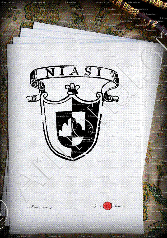 Family NIASI - Blazon NIASI - Coat of arms NIASI -Arms of NIASI - Family arms NIASI - Emblem NIASI - Crest NIASI - Seal NIASI - Heraldic NIASI - heraldic symbol NIASI - Genealogy NIASI - Family tree NIASI - Origin NIASI - The NIASI in the History - The NIASI in the nobility - Motto NIASI.