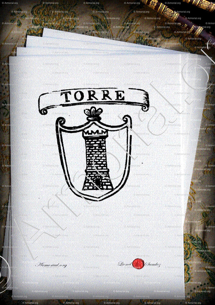 Famille TORRE - Blason TORRE - Blasonnement TORRE - Armoiries TORRE - Armoiries de famille TORRE - Armorial TORRE - Armes TORRE - Armes sur un écu TORRE - Ecu TORRE - Ecus armoriés TORRE - Bannière, flanchières, caparaçon armoriés TORRE - Bouclier armorié TORRE - Sceau TORRE - Sceau armorié TORRE - Archives TORRE - Généalogie TORRE - Arbre généalogique TORRE - Ascendance TORRE - Descendance TORRE - Héraldique TORRE - Origine TORRE . - Les TORRE dans l'Histoire - Les TORRE dans la noblesse - Devise TORRE - Armoiries de bourgeoisie TORRE - Armoiries de noblesse TORRE .