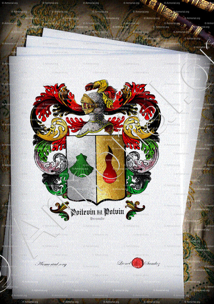 Origine du blason " POITEVIN dit POTVIN " : " Normandie, France () "