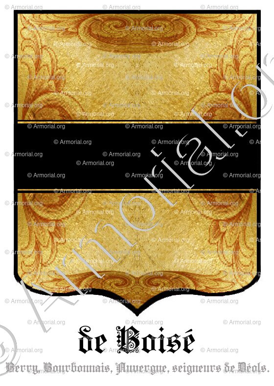 Origine du blason " de BOISE " : " Berry, Bourbonnais, Auvergne, seigneurs de Déols., France "