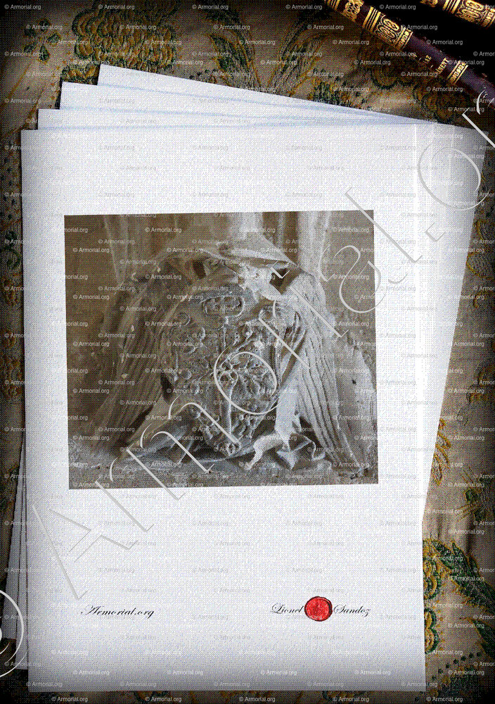 " D'azur, au chêne arraché d'or, au branches passées en sautoir. "