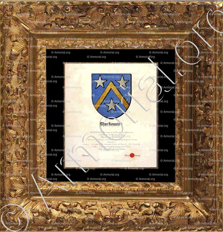 - Remarque : de nombreux CHARBONNIER existent hors Bourbonnais ; la présente notice se limite à la souche bourbonnaise signalée par les armoiries ci-dessus.