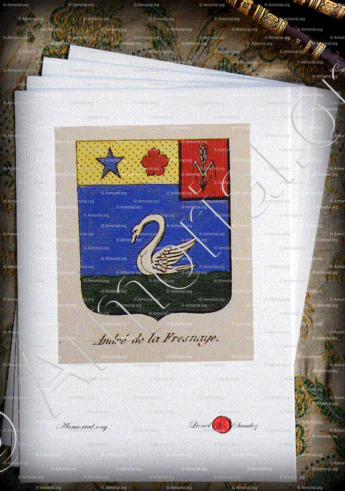 Et, les armoiries ANDRE DE LA FRESNAYE ne suffisent pas à expliquer les raisons de votre curiosité.