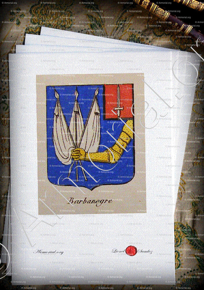 Famille BARBANEGRE - Blason BARBANEGRE - Blasonnement BARBANEGRE - Armoiries BARBANEGRE - Armoiries de famille BARBANEGRE - Armorial BARBANEGRE - Armes BARBANEGRE - Armes sur un écu BARBANEGRE - Ecu BARBANEGRE - Ecus armoriés BARBANEGRE - Bannière, flanchières, caparaçon armoriés BARBANEGRE - Bouclier armorié BARBANEGRE - Sceau BARBANEGRE - Sceau armorié BARBANEGRE - Archives BARBANEGRE - Généalogie BARBANEGRE - Arbre généalogique BARBANEGRE - Ascendance BARBANEGRE - Descendance BARBANEGRE - Héraldique BARBANEGRE - Origine BARBANEGRE . - Les BARBANEGRE dans l'Histoire - Les BARBANEGRE dans la noblesse - Devise BARBANEGRE - Armoiries de bourgeoisie BARBANEGRE - Armoiries de noblesse BARBANEGRE .
