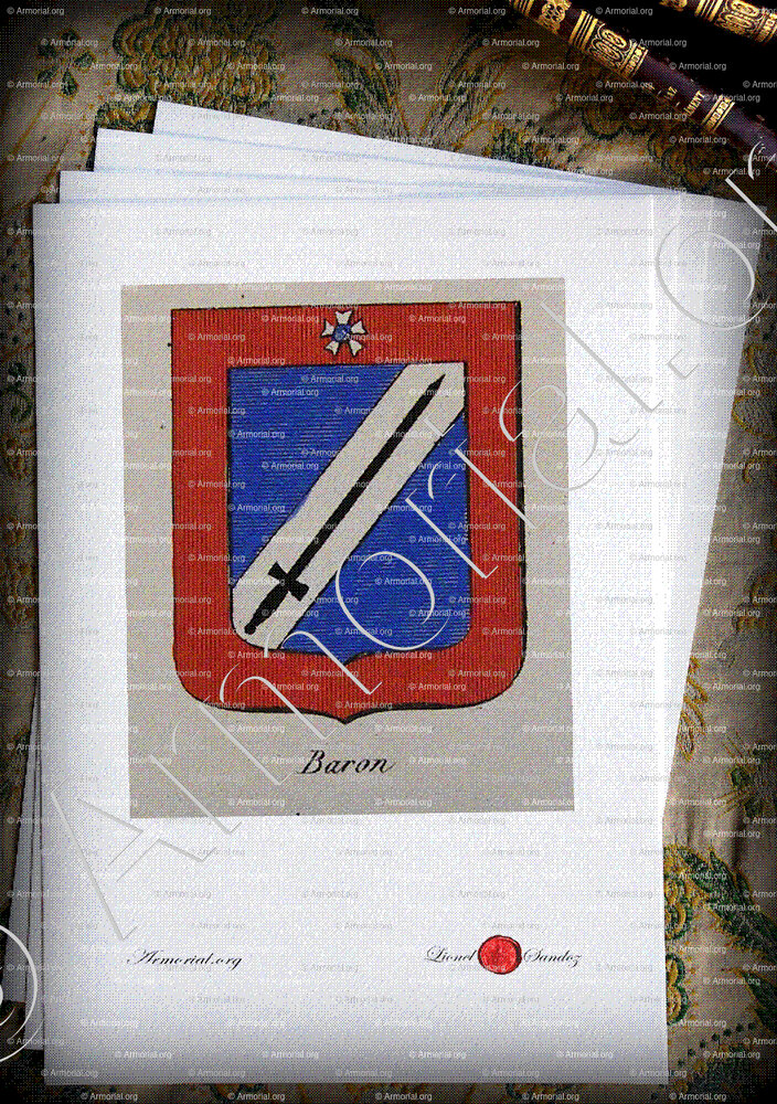Familia BARON - Blasón BARON - Escudo de armas BARON - Escudo BARON - Blasón BARON - Armas BARON - Las armas de BARON - Sello BARON - Archivo BARON - Genealogía BARON - Árbol genealógico BARON - Heráldica BARON - Origen BARON - BARON en Historia - BARON en la nobleza - Lema BARON - Divisa BARON .