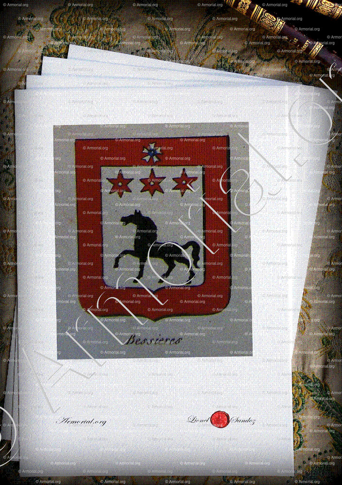 Famiglia BESSIERES - Blasone BESSIERES - Stemma BESSIERES - Stemma di famiglia BESSIERES - Lo stemma araldico della famiglia BESSIERES - Lo stemma di BESSIERES - Araldica e stemma BESSIERES - Registro Araldico BESSIERES - Stemmario BESSIERES - Registro Genealogico BESSIERES - Sigillo BESSIERES - Archivio BESSIERES - Genealogia BESSIERES - Albero genealogico BESSIERES - Araldica BESSIERES - Origine BESSIERES - In Storia BESSIERES - BESSIERES nella nobiltà.