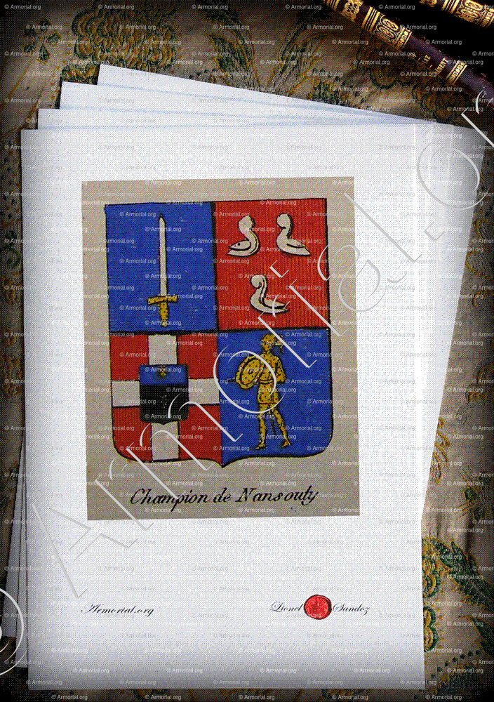 Famiglia CHAMPION DE NANSOUTY - Blasone CHAMPION DE NANSOUTY - Stemma CHAMPION DE NANSOUTY - Stemma di famiglia CHAMPION DE NANSOUTY - Lo stemma araldico della famiglia CHAMPION DE NANSOUTY - Lo stemma di CHAMPION DE NANSOUTY - Araldica e stemma CHAMPION DE NANSOUTY - Registro Araldico CHAMPION DE NANSOUTY - Stemmario CHAMPION DE NANSOUTY - Registro Genealogico CHAMPION DE NANSOUTY - Sigillo CHAMPION DE NANSOUTY - Archivio CHAMPION DE NANSOUTY - Genealogia CHAMPION DE NANSOUTY - Albero genealogico CHAMPION DE NANSOUTY - Araldica CHAMPION DE NANSOUTY - Origine CHAMPION DE NANSOUTY - In Storia CHAMPION DE NANSOUTY - CHAMPION DE NANSOUTY nella nobiltà.