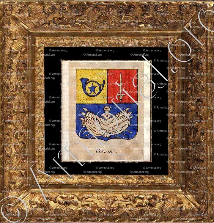 Família CORSIN - Blazon CORSIN - Braços CORSIN - Crista da família CORSIN - Armorial CORSIN - Armas CORSIN - Braços em um protetor CORSIN - Brasonadas CORSIN - Estampada CORSIN - Escudo blazoned CORSIN - Arquivo CORSIN - Ascendência CORSIN - Progeny CORSIN - Heráldica CORSIN - Origem CORSIN. - O CORSIN na História - CORSIN na nobreza - Moeda CORSIN - Burguesia Braços CORSIN - Nobreza Braços CORSIN.