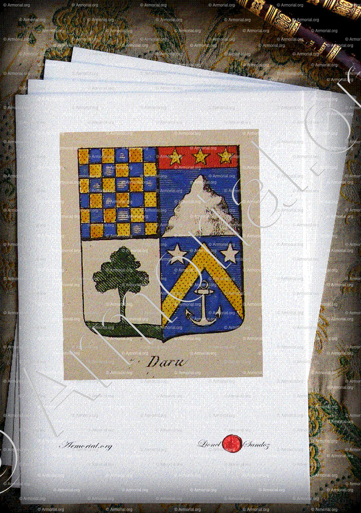 Famiglia DARU - Blasone DARU - Stemma DARU - Stemma di famiglia DARU - Lo stemma araldico della famiglia DARU - Lo stemma di DARU - Araldica e stemma DARU - Registro Araldico DARU - Stemmario DARU - Registro Genealogico DARU - Sigillo DARU - Archivio DARU - Genealogia DARU - Albero genealogico DARU - Araldica DARU - Origine DARU - In Storia DARU - DARU nella nobiltà.