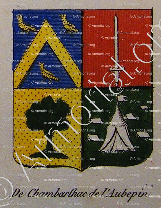 DE CHAMBARLHAC DE L'AUBEPIN est un nom qui s'accompagne d'un blason.
