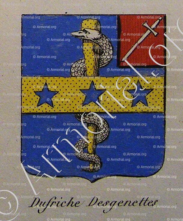 DUFRICHE DESGENETTES est un nom qui s'accompagne d'un blason.