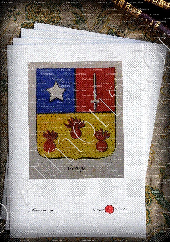 Familia GENCY - Blasón GENCY - Escudo de armas GENCY - Escudo GENCY - Blasón GENCY - Armas GENCY - Las armas de GENCY - Sello GENCY - Archivo GENCY - Genealogía GENCY - Árbol genealógico GENCY - Heráldica GENCY - Origen GENCY - GENCY en Historia - GENCY en la nobleza - Lema GENCY - Divisa GENCY .