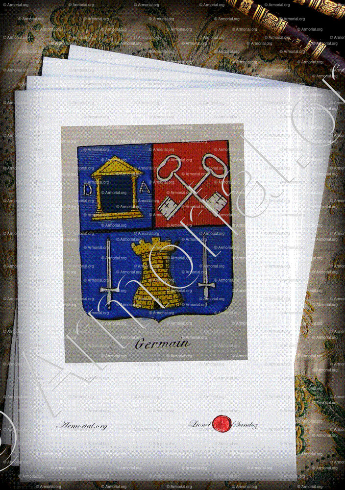 Famiglia GERMAIN - Blasone GERMAIN - Stemma GERMAIN - Stemma di famiglia GERMAIN - Lo stemma araldico della famiglia GERMAIN - Lo stemma di GERMAIN - Araldica e stemma GERMAIN - Registro Araldico GERMAIN - Stemmario GERMAIN - Registro Genealogico GERMAIN - Sigillo GERMAIN - Archivio GERMAIN - Genealogia GERMAIN - Albero genealogico GERMAIN - Araldica GERMAIN - Origine GERMAIN - In Storia GERMAIN - GERMAIN nella nobiltà.
