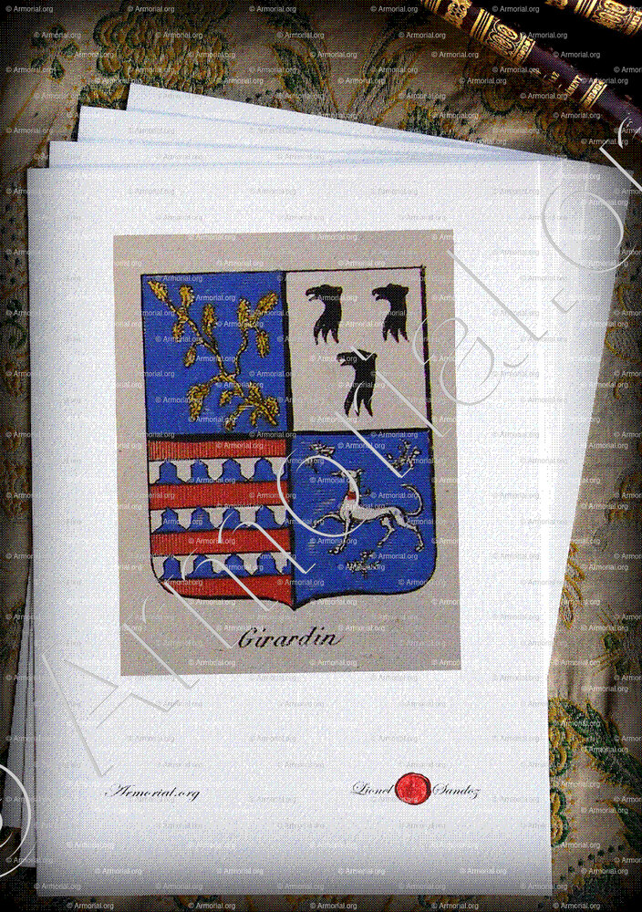 Famiglia GIRARDIN - Blasone GIRARDIN - Stemma GIRARDIN - Stemma di famiglia GIRARDIN - Lo stemma araldico della famiglia GIRARDIN - Lo stemma di GIRARDIN - Araldica e stemma GIRARDIN - Registro Araldico GIRARDIN - Stemmario GIRARDIN - Registro Genealogico GIRARDIN - Sigillo GIRARDIN - Archivio GIRARDIN - Genealogia GIRARDIN - Albero genealogico GIRARDIN - Araldica GIRARDIN - Origine GIRARDIN - In Storia GIRARDIN - GIRARDIN nella nobiltà.