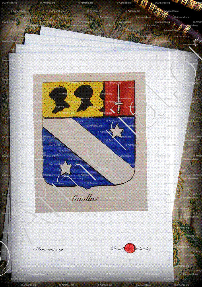 Famiglia GOULLUS - Blasone GOULLUS - Stemma GOULLUS - Stemma di famiglia GOULLUS - Lo stemma araldico della famiglia GOULLUS - Lo stemma di GOULLUS - Araldica e stemma GOULLUS - Registro Araldico GOULLUS - Stemmario GOULLUS - Registro Genealogico GOULLUS - Sigillo GOULLUS - Archivio GOULLUS - Genealogia GOULLUS - Albero genealogico GOULLUS - Araldica GOULLUS - Origine GOULLUS - In Storia GOULLUS - GOULLUS nella nobiltà.