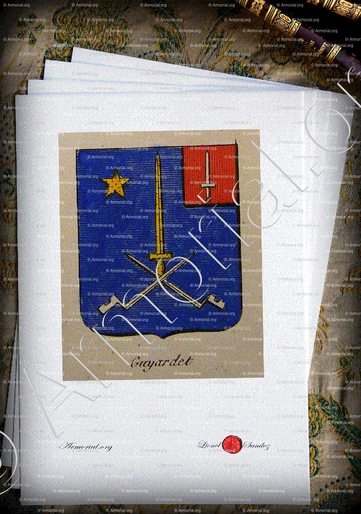 Famiglia GUYARDET - Blasone GUYARDET - Stemma GUYARDET - Stemma di famiglia GUYARDET - Lo stemma araldico della famiglia GUYARDET - Lo stemma di GUYARDET - Araldica e stemma GUYARDET - Registro Araldico GUYARDET - Stemmario GUYARDET - Registro Genealogico GUYARDET - Sigillo GUYARDET - Archivio GUYARDET - Genealogia GUYARDET - Albero genealogico GUYARDET - Araldica GUYARDET - Origine GUYARDET - In Storia GUYARDET - GUYARDET nella nobiltà.