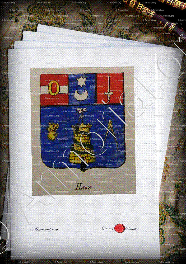 Family HAXO - Blazon HAXO - Coat of arms HAXO -Arms of HAXO - Family arms HAXO - Emblem HAXO - Crest HAXO - Seal HAXO - Heraldic HAXO - heraldic symbol HAXO - Genealogy HAXO - Family tree HAXO - Origin HAXO - The HAXO in the History - The HAXO in the nobility - Motto HAXO.