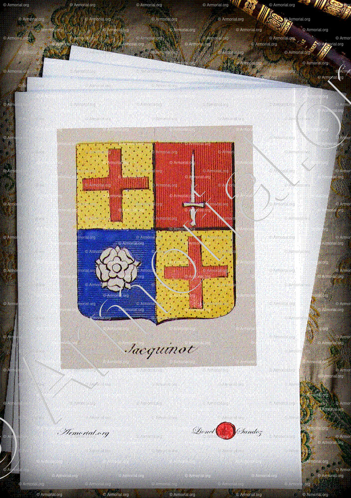 Famiglia JACQUINOT - Blasone JACQUINOT - Stemma JACQUINOT - Stemma di famiglia JACQUINOT - Lo stemma araldico della famiglia JACQUINOT - Lo stemma di JACQUINOT - Araldica e stemma JACQUINOT - Registro Araldico JACQUINOT - Stemmario JACQUINOT - Registro Genealogico JACQUINOT - Sigillo JACQUINOT - Archivio JACQUINOT - Genealogia JACQUINOT - Albero genealogico JACQUINOT - Araldica JACQUINOT - Origine JACQUINOT - In Storia JACQUINOT - JACQUINOT nella nobiltà.