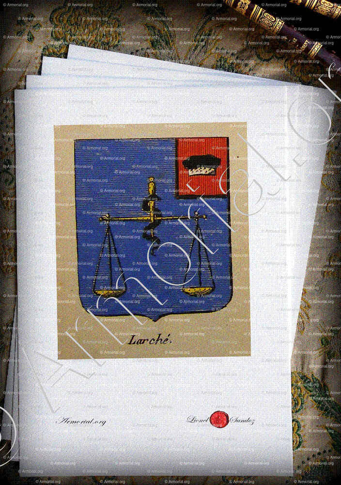 Famille LARCHE - Blason LARCHE - Blasonnement LARCHE - Armoiries LARCHE - Armoiries de famille LARCHE - Armorial LARCHE - Armes LARCHE - Armes sur un écu LARCHE - Ecu LARCHE - Ecus armoriés LARCHE - Bannière, flanchières, caparaçon armoriés LARCHE - Bouclier armorié LARCHE - Sceau LARCHE - Sceau armorié LARCHE - Archives LARCHE - Généalogie LARCHE - Arbre généalogique LARCHE - Ascendance LARCHE - Descendance LARCHE - Héraldique LARCHE - Origine LARCHE . - Les LARCHE dans l'Histoire - Les LARCHE dans la noblesse - Devise LARCHE - Armoiries de bourgeoisie LARCHE - Armoiries de noblesse LARCHE .