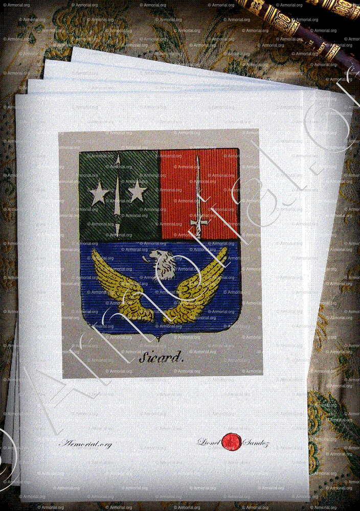 Famiglia SICARD - Blasone SICARD - Stemma SICARD - Stemma di famiglia SICARD - Lo stemma araldico della famiglia SICARD - Lo stemma di SICARD - Araldica e stemma SICARD - Registro Araldico SICARD - Stemmario SICARD - Registro Genealogico SICARD - Sigillo SICARD - Archivio SICARD - Genealogia SICARD - Albero genealogico SICARD - Araldica SICARD - Origine SICARD - In Storia SICARD - SICARD nella nobiltà.