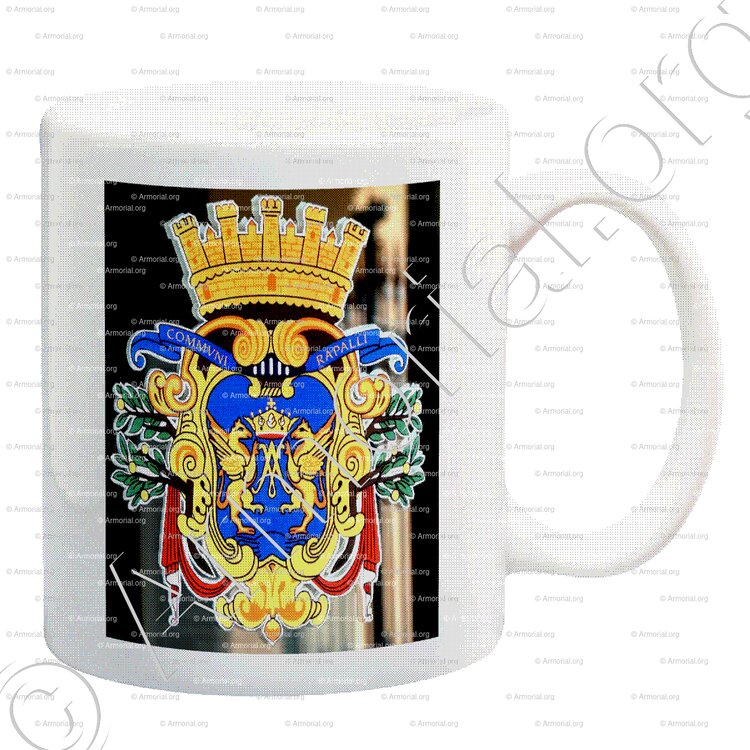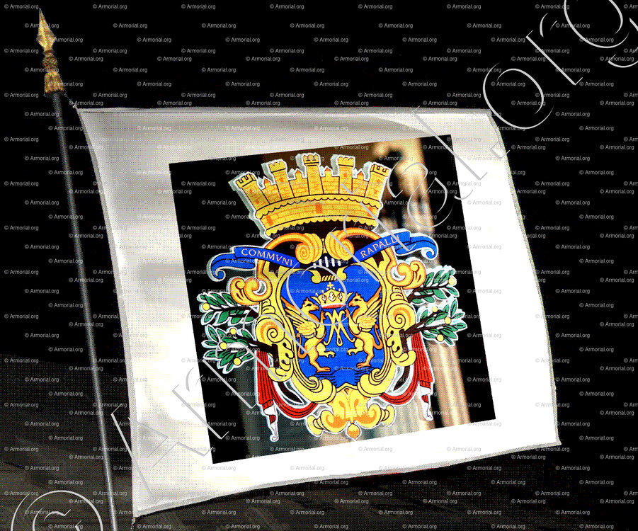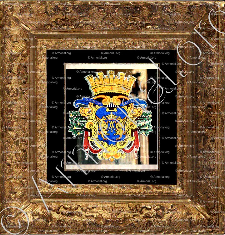 «D'azzurro, alla sigla Mariana, accostata da due grifoni controrampanti alla sigla, sostenenti, con le zampe anteriori, una corona, il tutto d'oro. Ornamenti esteriori di Città»