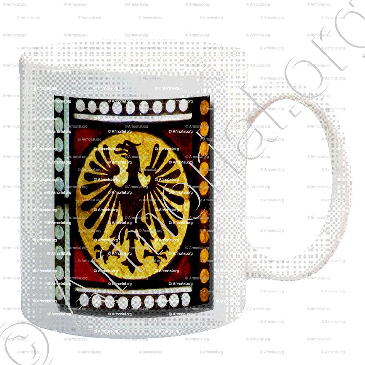 " Coupé de sable et d'or à deux aigles de l'un en l'autre. "
