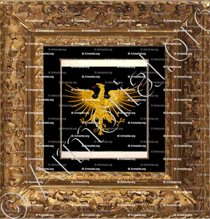 " Coupé de sable et d'or à deux aigles de l'un en l'autre. "