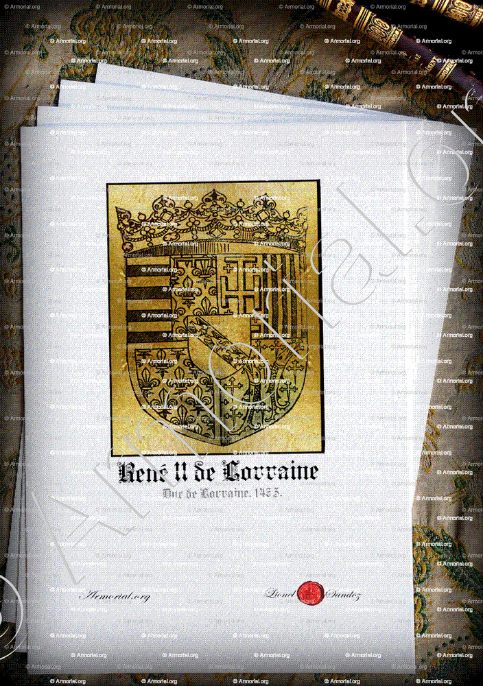 Familie RENE II de LORRAINE - Familiewapen RENE II de LORRAINE - Wapen RENE II de LORRAINE - Wapen of blazoen RENE II de LORRAINE - Schild RENE II de LORRAINE - Wapendiploma RENE II de LORRAINE - Zeehond RENE II de LORRAINE - Archief RENE II de LORRAINE - Genealogie RENE II de LORRAINE - Stamboom RENE II de LORRAINE - Heraldiek RENE II de LORRAINE - Herkomst RENE II de LORRAINE - RENE II de LORRAINE in History - RENE II de LORRAINE in de adel.