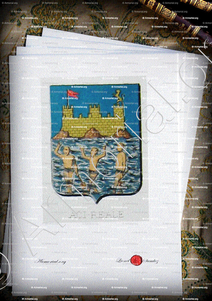 ACI REALE è un cognome che si accompagna ad un blasone ed inalbera le « armi gentilizie ».