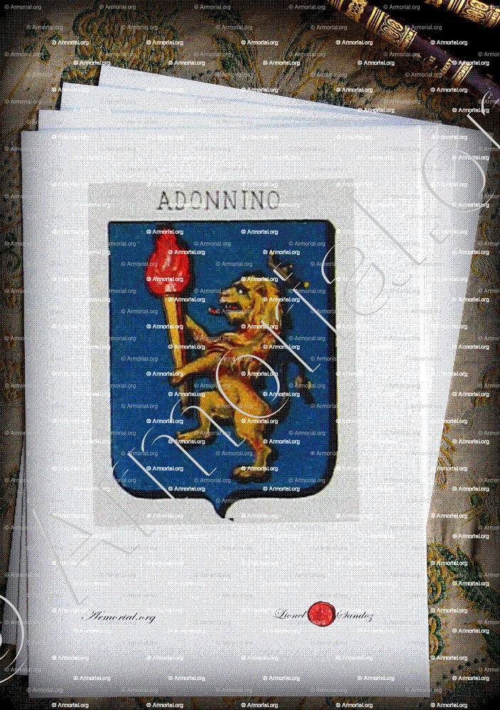 ADONNINO è un cognome che si accompagna ad un blasone ed inalbera le « armi gentilizie ».