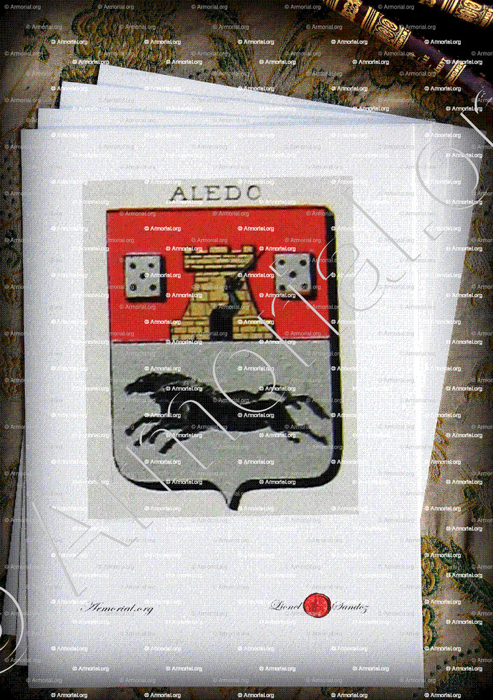 Famille ALEDO - Blason ALEDO - Blasonnement ALEDO - Armoiries ALEDO - Armoiries de famille ALEDO - Armorial ALEDO - Armes ALEDO - Armes sur un écu ALEDO - Ecu ALEDO - Ecus armoriés ALEDO - Bannière, flanchières, caparaçon armoriés ALEDO - Bouclier armorié ALEDO - Sceau ALEDO - Sceau armorié ALEDO - Archives ALEDO - Généalogie ALEDO - Arbre généalogique ALEDO - Ascendance ALEDO - Descendance ALEDO - Héraldique ALEDO - Origine ALEDO . - Les ALEDO dans l'Histoire - Les ALEDO dans la noblesse - Devise ALEDO - Armoiries de bourgeoisie ALEDO - Armoiries de noblesse ALEDO .
